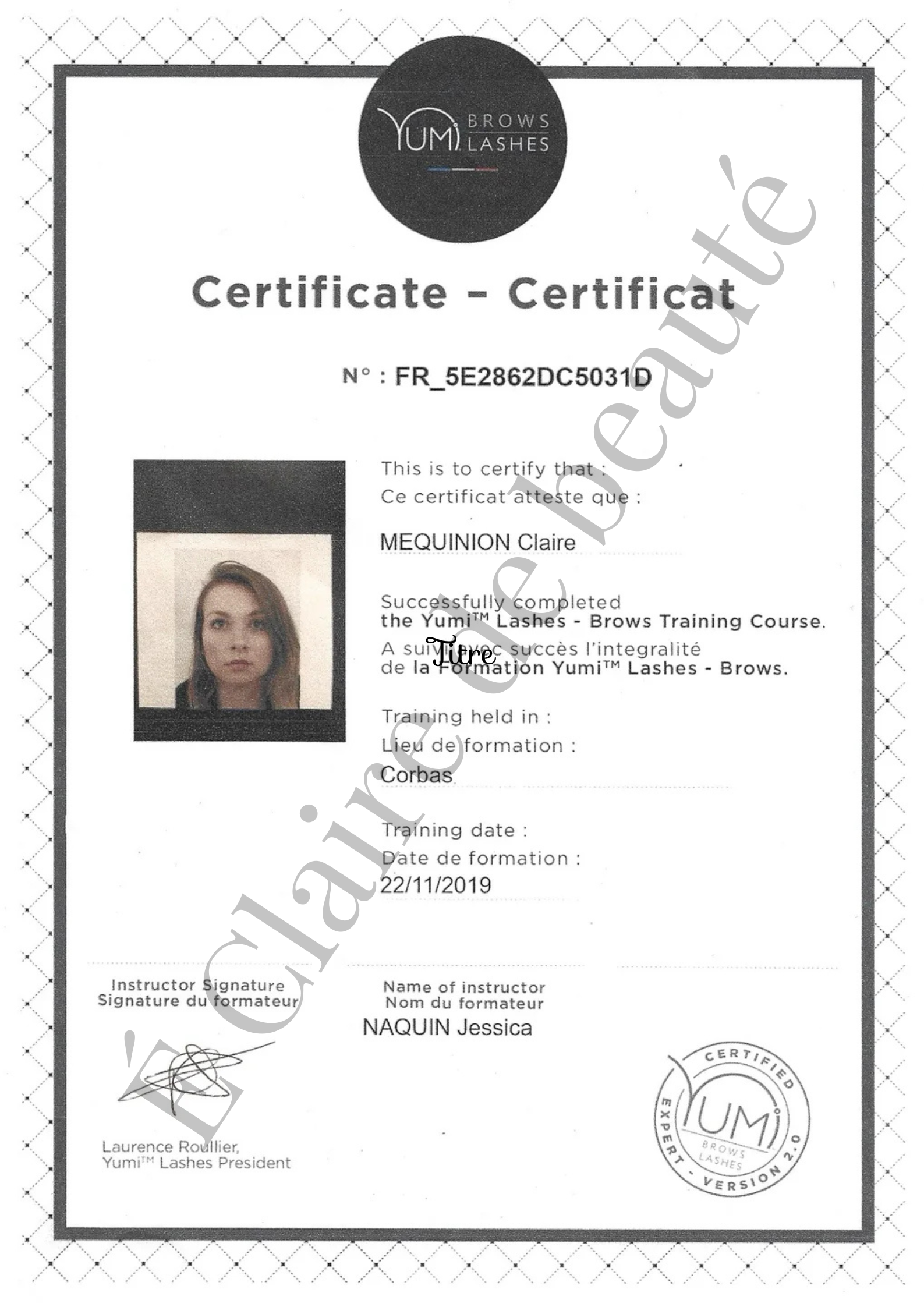 - Yumi Lashes et Yumi Brows – Certifiée avec 2 diplômes pour sublimer votre regard.