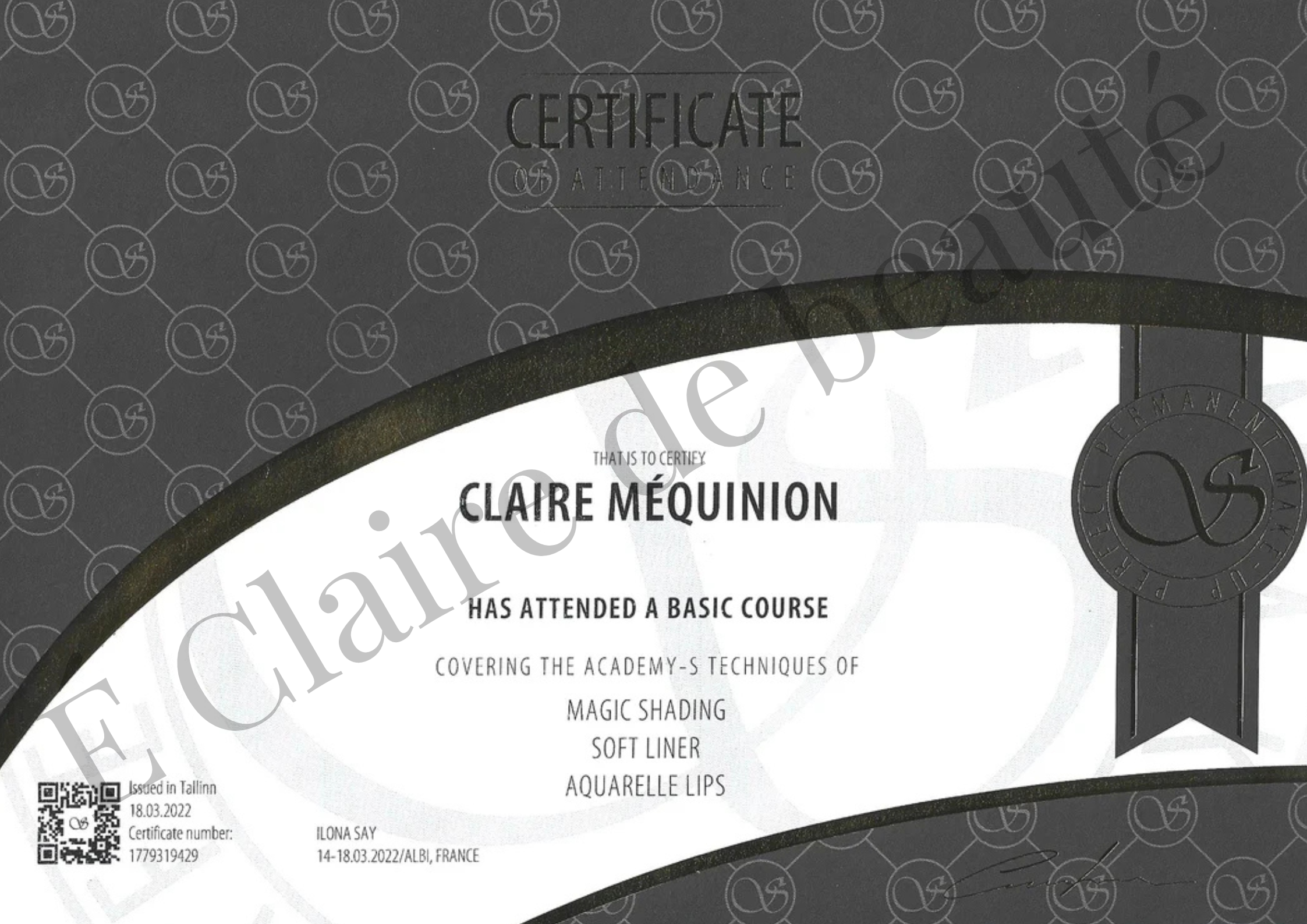 - Maquillage permanent (sourcils, lèvres et yeux) – Diplômée par Ilona Say.